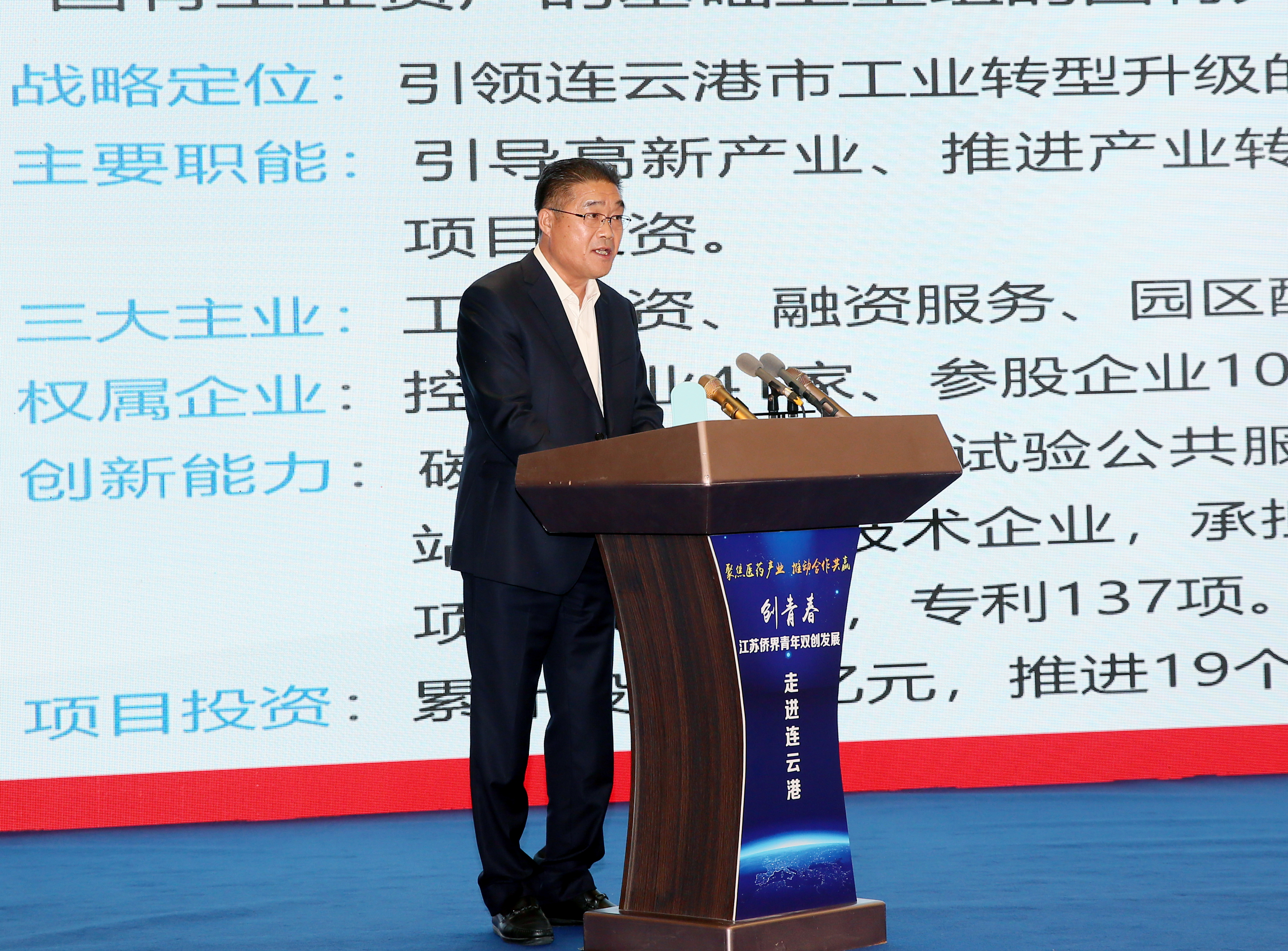 為深化醫(yī)藥技術(shù)交流合作,推動海內(nèi)外僑界資源與集團(tuán)國際醫(yī)藥創(chuàng)新產(chǎn)業(yè)園需求有效對接,11月2日至3日,由江蘇省僑聯(lián)指導(dǎo),省僑青會、市僑聯(lián)、市工業(yè)投資集團(tuán)聯(lián)合主辦的“創(chuàng)青春——江蘇僑界青年雙創(chuàng)發(fā)展·走進(jìn)連云港”交流實踐活動成功舉行。連云港市委副書記、統(tǒng)戰(zhàn)部部長、市政協(xié)黨組副書記胡建軍,省僑聯(lián)二級巡視員李發(fā)勇出席活動,并分別致辭。集團(tuán)公司黨委書記、董事長丁銳,副總經(jīng)理劉承志,總經(jīng)濟師陳如軍和來自全省的近50名僑青和僑商代表參加活動。