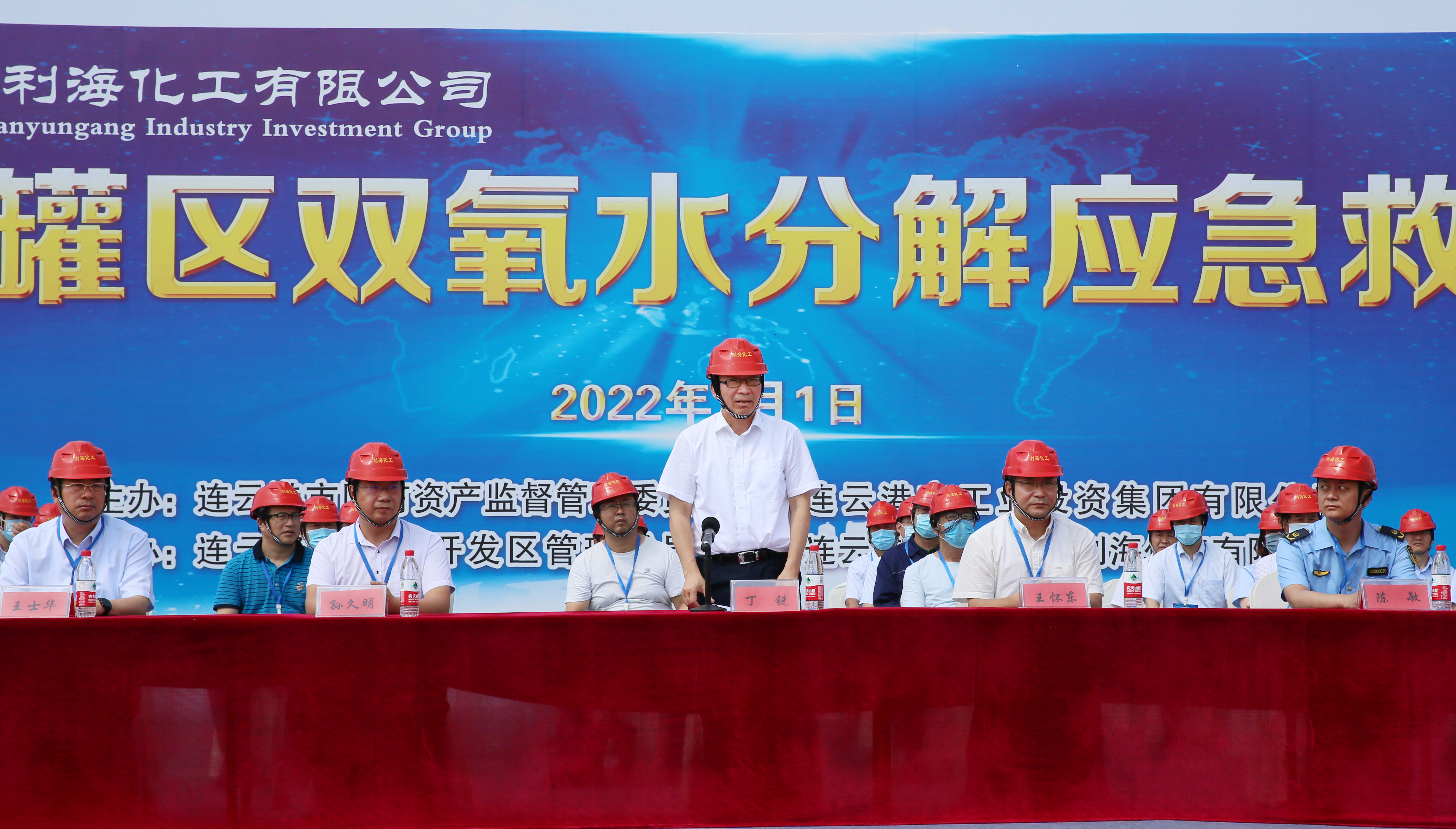 7月1日上午,集團(tuán)公司在利海化工公司開展雙氧水罐區(qū)雙氧水分解應(yīng)急處置演練。市國資委黨委委員、三級調(diào)研員王懷東,集團(tuán)公司安委會成員,各權(quán)屬單位主要負(fù)責(zé)人、分管安全負(fù)責(zé)人觀摩演練。集團(tuán)公司董事長、黨委書記丁銳宣布演練開始并作點(diǎn)評。