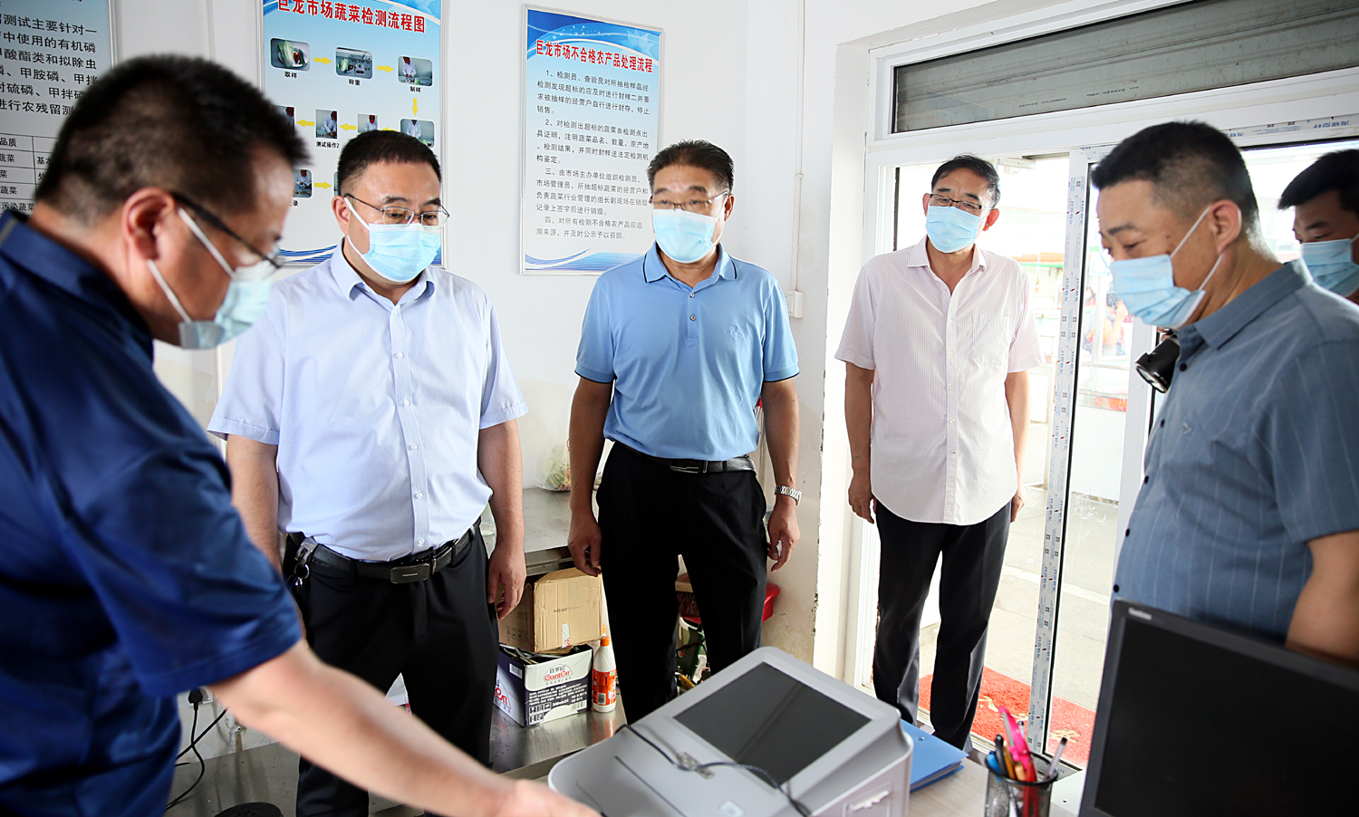 楊龍一行按防疫要求完成體溫測量、蘇康碼掃碼后,進入市場區(qū)域,認真察看市場內口罩佩戴、掃碼查驗、體溫檢測等基礎防疫措施,仔細詢問人員管控、防疫消殺等制度落實情況。查看了解糧油肉蛋奶及水果、蔬菜等重要食品的市場供應、保質穩(wěn)價等情況。楊龍指出,農貿市場人員流動性大、接觸頻繁,是疫情防控的重要區(qū)域。金航公司要切實落實好主體責任,按照市疫情防控指示精神和集團“十排查”“十到位”的要求,嚴格落實好各項措施,做好入口人員管理,嚴格落實體溫檢測、佩戴口罩、健康碼掃碼等工作,全面落實環(huán)境清潔消毒。要嚴把食品安全關,嚴格履行相關手續(xù),確保食品流通各環(huán)節(jié)安全可控。要規(guī)范經營,確保市場食品供應充足、價格穩(wěn)定、消費安全。同時要積極引導群眾和工作人員做好自我防護,保持良好衛(wèi)生習慣,倡導健康生活方式。