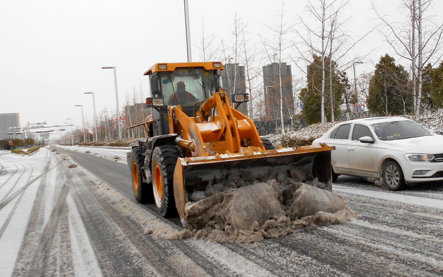 在開(kāi)發(fā)區(qū)、徐圩新區(qū)、灌云臨港產(chǎn)業(yè)區(qū)的各個(gè)區(qū)域,到處都是集團(tuán)綠化保潔人的最美身影,他們?cè)诟鲉挝稽h員先鋒隊(duì)、青年突擊隊(duì)的配合下,帶上融雪劑和作業(yè)工具,發(fā)揚(yáng)不怕艱苦、連續(xù)作戰(zhàn)、敢打敢拼的工投精神,對(duì)交通要道、橋梁、彎道等重點(diǎn)防滑路段進(jìn)行清雪防凍處理,鋪灑融雪劑40余噸,為疫情防控期間車輛行人出行安全增添一份保障。
