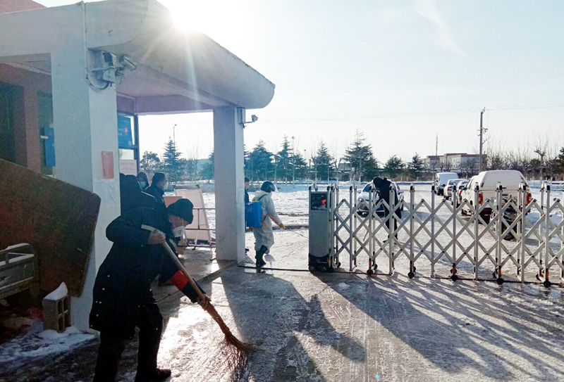 在集團(tuán)下屬八個(gè)職工小區(qū),由離退休人員組成的夕陽(yáng)服務(wù)隊(duì)配合防控疫情值守人員不懼嚴(yán)寒,冒著大雪,在小區(qū)加強(qiáng)巡邏防控,入戶排查,清掃積雪,對(duì)進(jìn)出車輛和行人進(jìn)行體溫測(cè)量、信息登記。同時(shí)義務(wù)為小區(qū)居民采購(gòu)糧油、蔬菜、純凈水等生活物品,全力當(dāng)好他們的服務(wù)員、后勤員、宣傳員、監(jiān)督員。