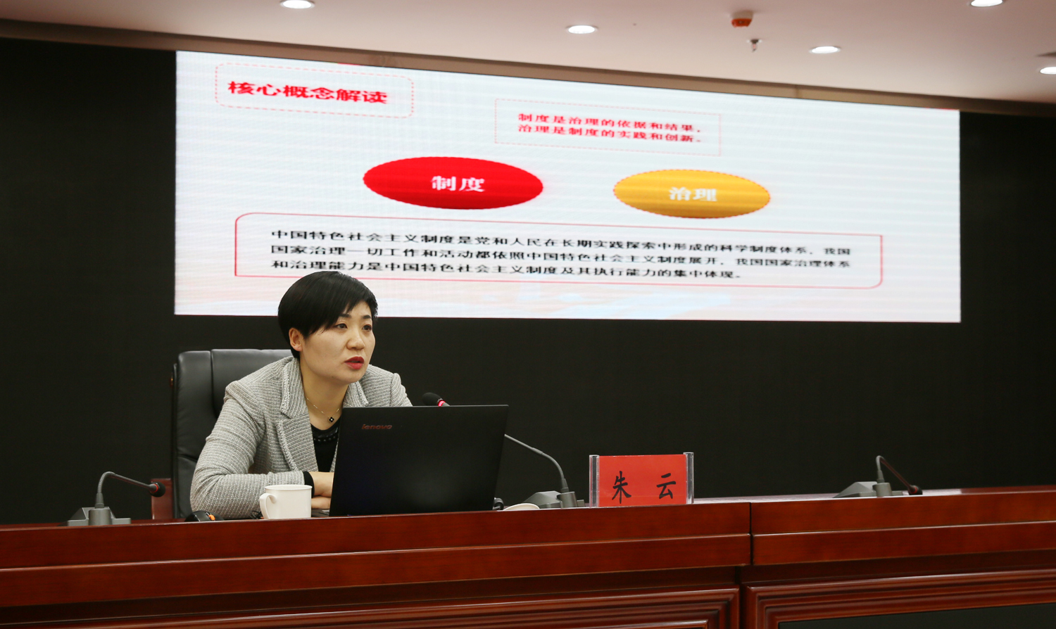朱云以“開(kāi)辟中國(guó)之治新境界”為題,緊緊圍繞黨的十九屆四中全會(huì)精神,系統(tǒng)闡述和深入解讀了堅(jiān)持和完善中國(guó)特色社會(huì)主義制度、推進(jìn)國(guó)家治理體系和治理能力現(xiàn)代化的重大意義、總體要求、總體目標(biāo)、重點(diǎn)任務(wù)。宣講報(bào)告聚焦重點(diǎn)和關(guān)鍵,將理論與實(shí)際、案例與數(shù)據(jù)相結(jié)合,內(nèi)涵豐富、論述精辟、通俗易懂,令與會(huì)人員深受啟迪,倍受教育。
