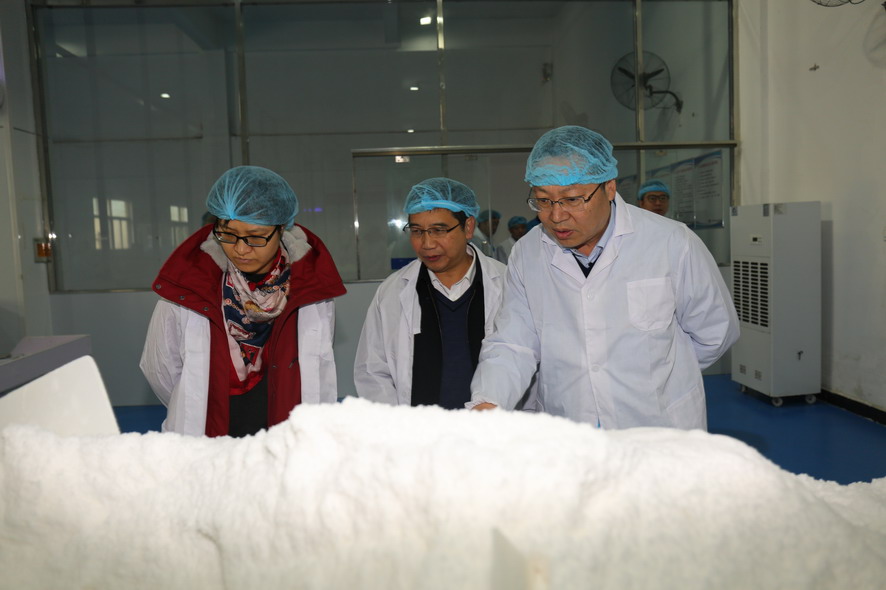 曹鑫副處長(zhǎng)一行參觀了金橋制鹽公司雪花鹽車間、加工鹽車間和包裝鹽車間,現(xiàn)場(chǎng)了解海食鹽生產(chǎn)工藝流程、產(chǎn)品銷售情況,并聽取了公司目前生產(chǎn)過程、質(zhì)量管理以及市場(chǎng)銷售等情況匯報(bào)。曹鑫副處長(zhǎng)對(duì)金橋制鹽公司質(zhì)量管理工作給予了肯定,并希望公司能夠牽頭制訂海鹽生產(chǎn)企業(yè)工藝流程標(biāo)準(zhǔn),為國(guó)家制訂海鹽質(zhì)量管理辦法提供參考依據(jù)。