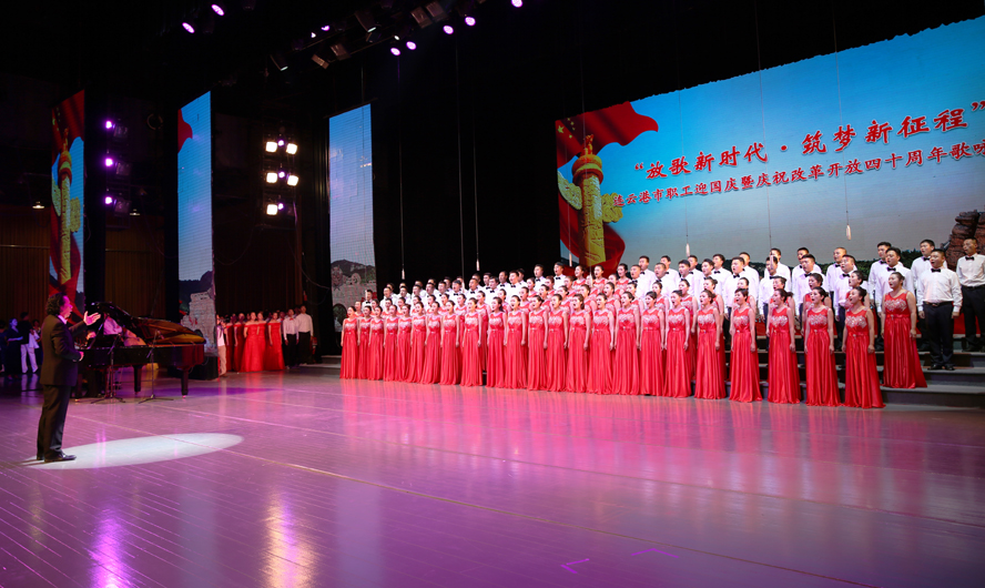 928日下午,由市委宣傳部、市總工會、市文廣新局聯(lián)合舉辦的“放歌新時代·筑夢新征程”——連云港市職工迎國慶暨慶祝改革開放四十周年歌詠比賽在市藝術(shù)中心隆重舉行。來自各縣區(qū)、各條戰(zhàn)線的16支代表隊參加比賽,經(jīng)過3個多小時緊張角逐,集團公司組織的100人合唱隊以《走向復興》、《天路》兩首激昂向上的歌曲脫穎而出,獲得一等獎。