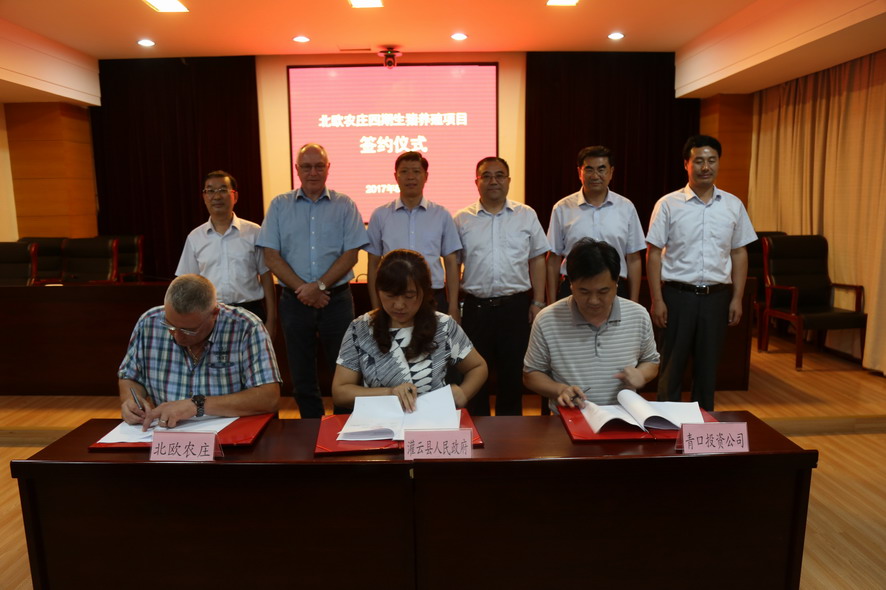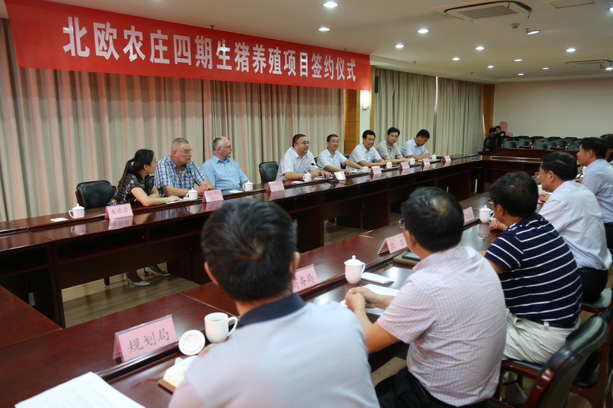 8月7日下午,北歐農莊四期生豬養(yǎng)殖項目簽約儀式在灌云縣行政中心舉行。集團公司領導楊龍、胡建明、陳如軍,灌云縣領導朱興波、王慶嘉、張凌云,丹育公司董事勞倫斯·桑德高,連云港北歐農莊生豬養(yǎng)殖有限公司首席執(zhí)行官楊林柏等出席簽約儀式。