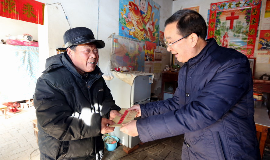 1月20日上午,集團(tuán)公司總經(jīng)理胡建明代表集團(tuán)黨委專門來到對口扶貧點,贛榆區(qū)沙河鎮(zhèn)北朱果村走訪慰問貧困戶。在沙河鎮(zhèn)人大主席曹軍華的陪同下,胡建明共看望了十戶貧困戶,每到一家,都關(guān)切地詢問他們生產(chǎn)生活狀況和遇到的困難,勉勵他們堅定信心,樹立戰(zhàn)勝困難的勇氣,并為他們送去慰問金和節(jié)日的祝福。