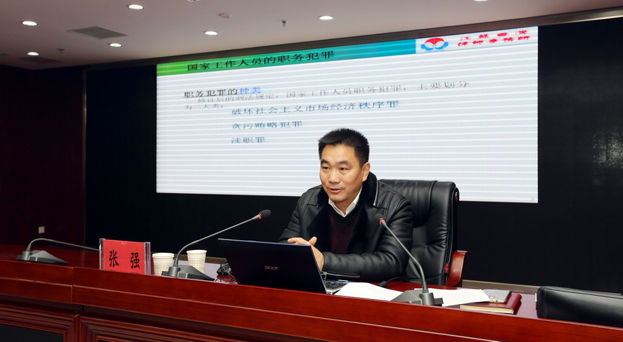 為進(jìn)一步幫助廣大干部職工筑牢思想道德防線,預(yù)防職務(wù)犯罪,1228日上午,集團(tuán)公司舉行廉潔履職警示教育專(zhuān)題報(bào)告會(huì),邀請(qǐng)江蘇田灣律師事務(wù)所副主任張強(qiáng)作廉潔履職專(zhuān)題報(bào)告。集團(tuán)公司領(lǐng)導(dǎo)班子成員,各單位領(lǐng)導(dǎo)班子成員、三級(jí)法人單位黨政負(fù)責(zé)人、集團(tuán)總部全體管理人員參加報(bào)告會(huì)。