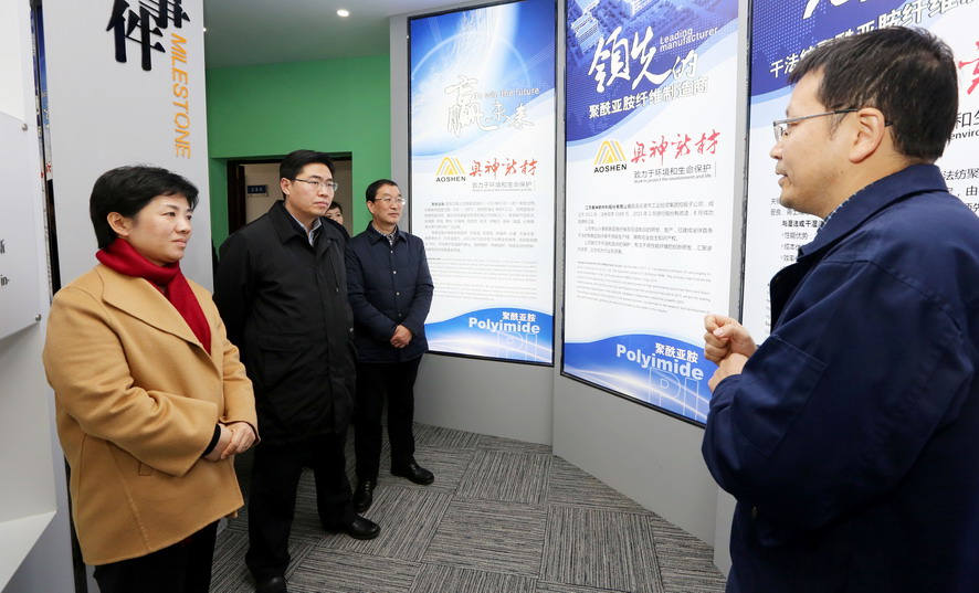 萬(wàn)聞華一行先后參觀了奧神新材料公司展廳和生產(chǎn)車(chē)間,聽(tīng)取了該公司目前的發(fā)展情況匯報(bào),詳細(xì)了解高性能纖維產(chǎn)品的相關(guān)性能和發(fā)展前景,對(duì)該公司在纖維行業(yè)等方面取得的成績(jī)給予充分肯定。萬(wàn)聞華希望奧神新材料公司要進(jìn)一步突出“高、新、優(yōu)”特色,不斷推動(dòng)產(chǎn)業(yè)高端化、規(guī)?;?、集聚化發(fā)展,為推動(dòng)全市纖維新材料產(chǎn)業(yè)發(fā)展做出新的貢獻(xiàn)。