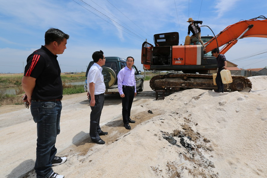 518日,集團(tuán)公司總經(jīng)理胡建明利用一整天的時(shí)間,就如何推進(jìn)原料鹽基地建設(shè),提升品種鹽市場(chǎng)競(jìng)爭(zhēng)力,應(yīng)對(duì)食鹽政策改革形勢(shì),分別深入金橋制鹽公司的原料鹽儲(chǔ)存車間、徐圩投資公司的新灘及深港服務(wù)區(qū)、灌西投資公司的礦鹵日曬制鹽及柴門海鹽等生產(chǎn)現(xiàn)場(chǎng)進(jìn)行了實(shí)地調(diào)研考察。在調(diào)研過程中,胡總詳細(xì)了解了從池內(nèi)鹽工藝、扒鹽流程、原鹽運(yùn)輸、到車間儲(chǔ)存等整個(gè)原料鹽輸送環(huán)節(jié)的情況,指出了存在的相關(guān)問題,并要求要根據(jù)鹽業(yè)市場(chǎng)發(fā)展情況,加強(qiáng)調(diào)研,科學(xué)謀劃有關(guān)方案,高規(guī)格推進(jìn)海鹽原料鹽基地建設(shè),為應(yīng)對(duì)食鹽市場(chǎng)放開做好準(zhǔn)備。胡總還調(diào)研了氯堿公司的安全環(huán)保工作。