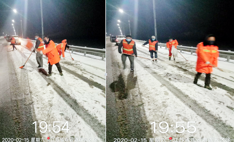 215日晚1800時,徐圩悅升公司班子成員及各分公司黨政負(fù)責(zé)人全員出動,帶領(lǐng)18名突擊隊員快速趕赴新區(qū)上海路、徐圩大道、徐新路、金港路等主要交通要道,連續(xù)奮戰(zhàn)4個多小時,對橋梁、彎道等重點防滑路段進行清雪防凍處理,共鋪灑融雪劑10余噸?!跋愫忧榫墶⑿腋<覉@”兩個職工小區(qū)防控疫情值守人員,不懼嚴(yán)寒,冒著大雪,在小區(qū)加強巡邏防控。該公司應(yīng)急大隊按照徐圩新區(qū)防疫指揮部要求,配合社區(qū)對珠江鋼管相關(guān)路道進行封閉管控。
