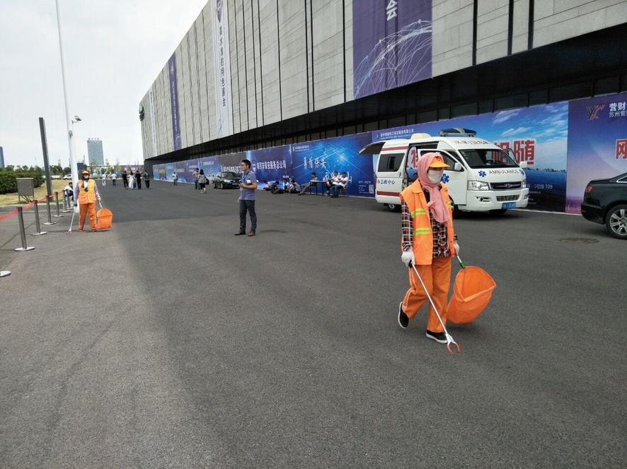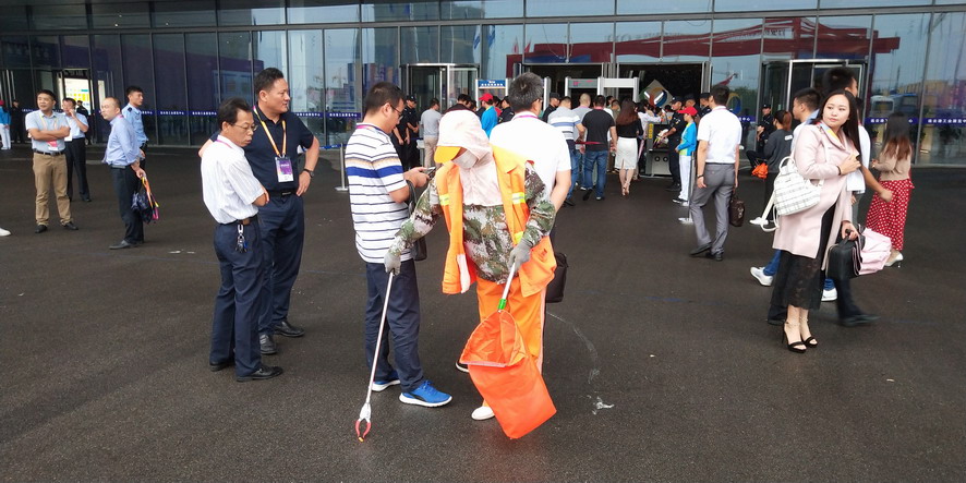 9月14日,連續(xù)忙碌了兩個禮拜的職工們還沒來得及休息,便又投入到“連博會”的準備工作中去。由于本屆“連博會”共有來自27個國家和地區(qū)的420家企業(yè)參展,展覽總面積達3.7萬平方米,各家展商在布置展臺時,各類生活垃圾、裝修垃圾等一度將該公司布設(shè)的100多個垃圾桶都塞滿了,在安排好人工清理的同時,該公司還安排垃圾清運車對積存垃圾進行清理清運,組織灑水車對會場及周邊道路進行沖洗,一直到9月18日晚上9點左右才完成準備工作。19日“連博會”開幕當(dāng)天,負責(zé)現(xiàn)場保潔工作的職工們早上6點多就趕到了會場,冒雨在會場周邊開始忙碌,一臺大型清掃車和一臺灑水車也在會場旁隨時待命。到了中午,當(dāng)展商們在室內(nèi)小憩的時候,室外的職工們?yōu)榱瞬坏⒄`事,站在風(fēng)口匆匆地扒拉兩口混雜著雨水的盒飯,就又投入到緊張的清理工作中去。僅19號開幕當(dāng)天,累計清理各類垃圾7噸左右,為“連博會”的正常召開提供了一個干凈、整潔的會場環(huán)境。