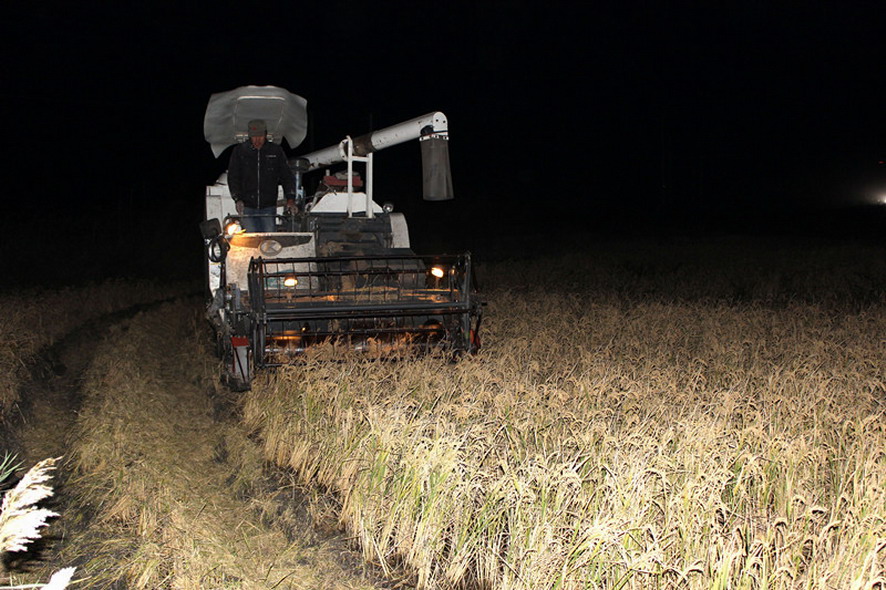11月9日夜七時(shí)許,青口投資公司大新農(nóng)場(chǎng),工會(huì)副主席王士超作為巡查組成員,正在組織二分場(chǎng)趙華勇條田水稻種植戶在搶收水稻。