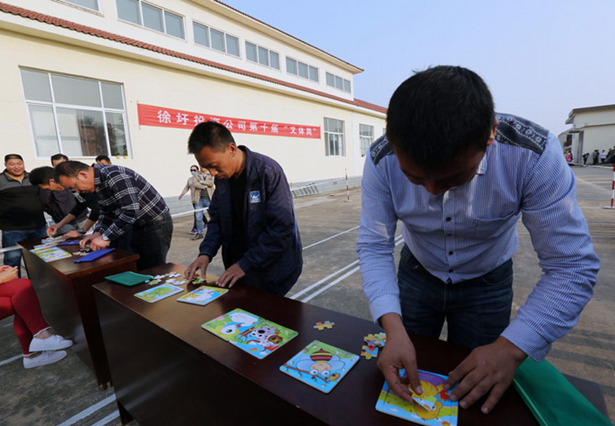 本屆“文體周”圍繞“活力健身·逐夢徐圩”活動主題,組織19支代表隊近1000人次參賽隊員在拔河、籃球、臺球、摜蛋、卡拉OK及實心球投準(zhǔn)等11個項目比賽中,進(jìn)行為期一周時間的奮力角逐。在開幕式當(dāng)天的男女混合拔河、智力拼圖接力和穿越呼啦圈三個項目比賽中,悅升一隊、機關(guān)、悅升二隊別獲得拔河、智力拼圖和穿越呼啦圈項目比賽的第一名。
