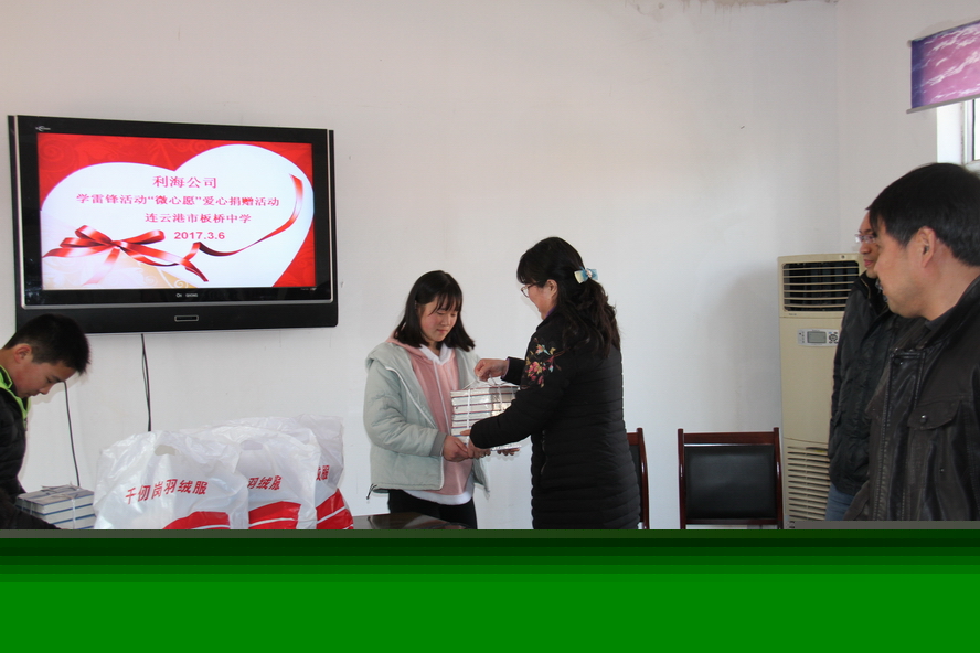 36日下午,利海公司按連云區(qū)“學(xué)雷鋒志愿服務(wù)月”活動內(nèi)容,主動聯(lián)系板橋中學(xué),了解到有部分貧困學(xué)生的實際困難后,積極與學(xué)校開展圓夢“微心愿”活動,為他們送去棉衣與書籍等學(xué)生們心中的“微心愿”。
