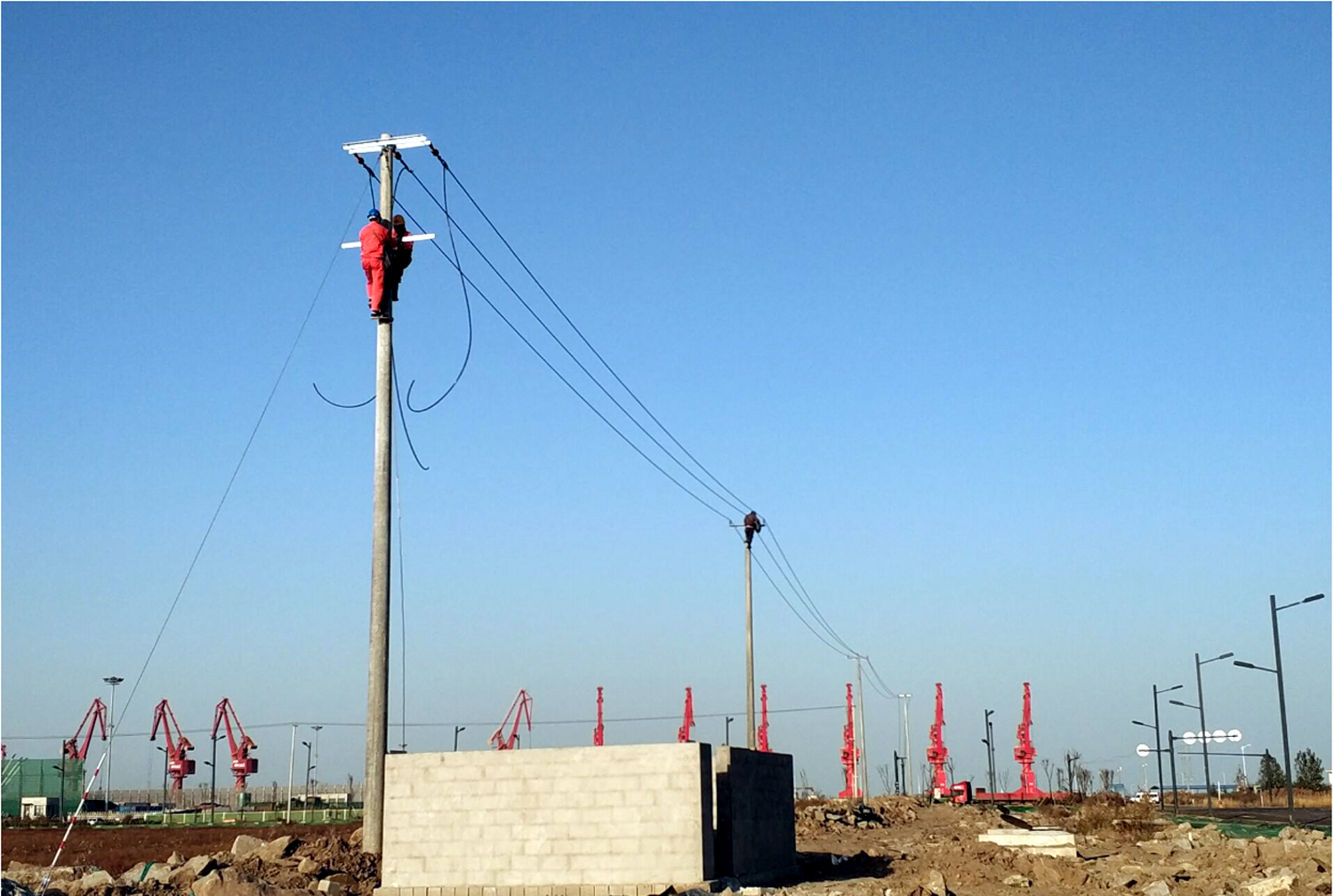 “他們這么年輕,沒有經(jīng)驗(yàn),能爬這么高的電桿么?”臺(tái)南供電所負(fù)責(zé)人趙勇對(duì)他們爬桿作業(yè)倍感擔(dān)心。在15米高的電桿前,青年突擊隊(duì)員們二話不說,穿上腳扣,戴上保護(hù)手套,系好安全帶,動(dòng)作干脆利落,三下五除二就爬到了桿頂,在隊(duì)長孫迎照的指揮下開始了施工作業(yè),在規(guī)定時(shí)間內(nèi)圓滿完成了工作任務(wù),徹底掃除了趙所長之前所有的擔(dān)心。“我們能行,我們可以!”逐漸成為青年突擊隊(duì)響亮的口號(hào)。在各個(gè)施工現(xiàn)場,總能看見這支青年突擊隊(duì)隊(duì)員們穿梭于工地的各個(gè)角落,在各種角鐵鋼架上進(jìn)行復(fù)雜的操作,在高高的電桿上檢修故障。總能在施工現(xiàn)場的每一個(gè)角落看見青年突擊隊(duì)員進(jìn)行現(xiàn)場施工、組織協(xié)調(diào)、質(zhì)量控制、質(zhì)量驗(yàn)收等各項(xiàng)工作時(shí)的身影。他們兢兢業(yè)業(yè)、埋頭苦干,確保了項(xiàng)目計(jì)劃的順利實(shí)施,保障了項(xiàng)目工期的順利推進(jìn)。