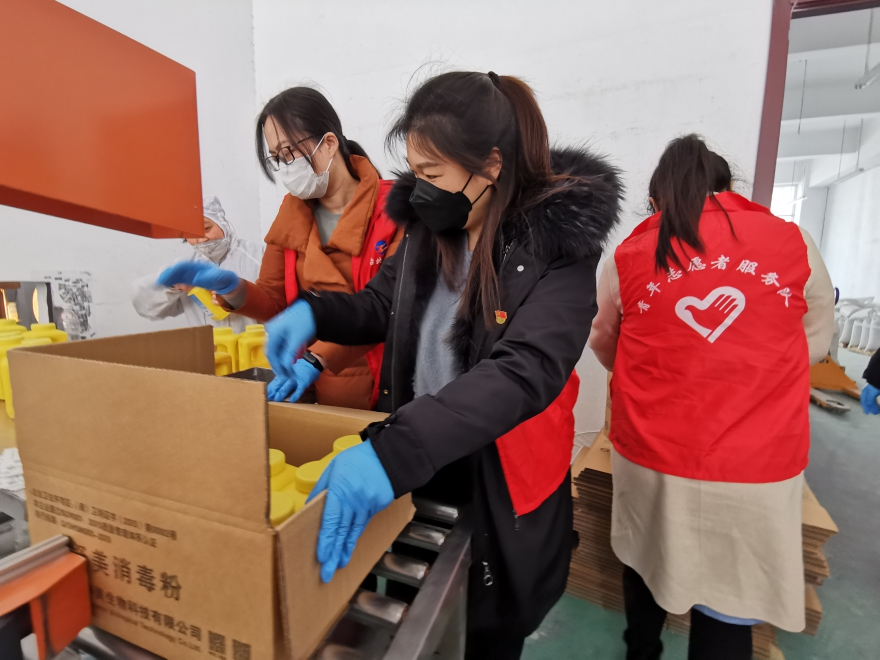 在得知美多利科創(chuàng)園入園企業(yè)永榮生物公司有一批緊急運(yùn)往武漢的消毒粉訂單,工人緊缺的信息,臺(tái)北公司青年突擊隊(duì)第一時(shí)間奔赴生產(chǎn)現(xiàn)場(chǎng),“發(fā)放、裝車(chē)、運(yùn)輸”,分工合作,保證效率,確保產(chǎn)品及時(shí)發(fā)送,助力戰(zhàn)“疫”一線(xiàn)。 在墟溝街道南巷社區(qū)疫情防控一線(xiàn)有著這么一群臺(tái)北投資公司“娘子軍”,她們是一名普通的黨員,在家中是母親、是妻子、是女兒,在這里,當(dāng)她們穿上紅馬甲,戴上口罩,站在寒冷的卡口,她們就是疫情防控的宣傳員、疫情卡口的執(zhí)勤員、居家隔離的聯(lián)絡(luò)員。
