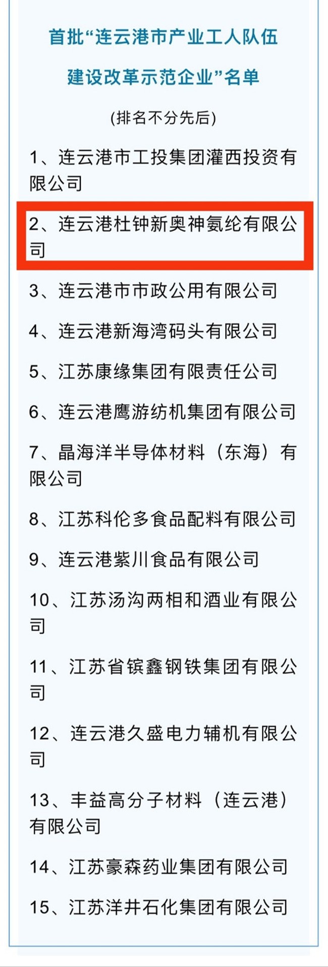 近日,連云港市總工會公布了首批連云港市產(chǎn)業(yè)工人隊伍建設改革示范企業(yè)名單,氨綸公司成功入選。