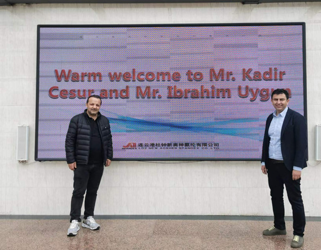 隨著疫情的結束以及紡織服裝市場的回暖,近日,土耳其NOGATEX公司總經理IBRAHIM和銷售總監(jiān)KADIR到訪氨綸公司,對雙方的戰(zhàn)略合作方向進行了探討和交流。這是繼2016、2018年之后客戶的第三次來訪,董事長張斌對他們的到來表示熱烈歡迎。