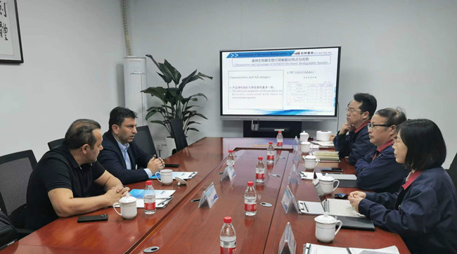 會談期間,曾登部長就生物基生物可降解氨綸的開發(fā)背景及市場應用做了專題介紹;雙方還就消費后再生氨綸、低溫定型氨綸及無縫內衣專用氨綸等產品的性能及銷售前景進行了深入探討和交流??蛻舯硎荆S著人們消費理念的轉變,綠色低碳、環(huán)??沙掷m(xù)將成為新風尚,而奧神氨綸在這方面一直走在前列,因此,對與奧神的合作充滿信心。