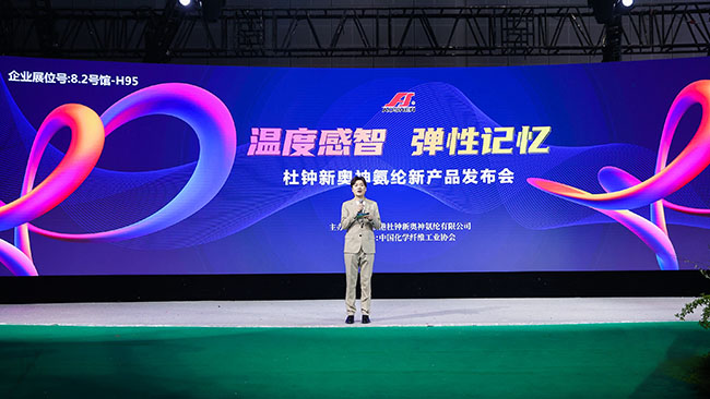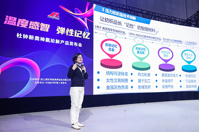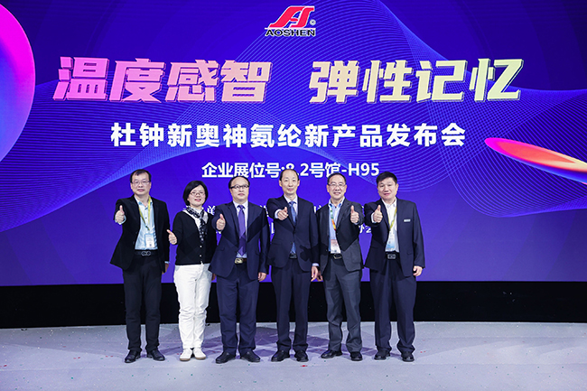 3月29日,連云港杜鐘新奧神氨綸有限公司“溫度感智,彈性記憶——杜鐘新奧神氨綸新產(chǎn)品發(fā)布會(huì)在國家會(huì)展中心(上海)精彩呈現(xiàn)。中國化學(xué)纖維工業(yè)協(xié)會(huì)會(huì)長陳新偉、中國化學(xué)纖維工業(yè)協(xié)會(huì)總經(jīng)濟(jì)師、氨綸分會(huì)常務(wù)副會(huì)長李增俊、江南大學(xué)教育部針織技術(shù)工程研究中心副教授萬愛蘭蒞臨現(xiàn)場(chǎng),來自產(chǎn)業(yè)鏈的知名面料、服裝企業(yè)200余人參加了本次發(fā)布會(huì),一起分享奧神創(chuàng)新研發(fā)成果,探索氨綸應(yīng)用新方向。