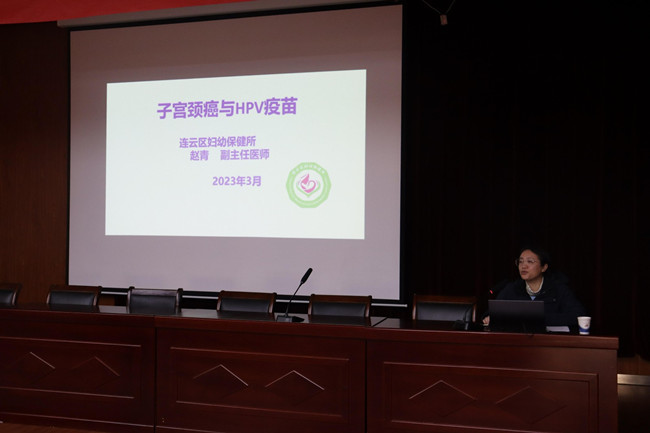 醫(yī)療培訓護健康。為提升女職工健康水平,增強女職工健康意識,女工委邀請連云區(qū)婦幼保健所副主治醫(yī)師趙青開展“愛在‘三八’,關愛女工”健康講座,課程名為《子宮頸癌和HPV疫苗》。參訓職工深感獲益匪淺,認為本次培訓增強了大家的自我健康管理意識,為大家強身健體奠定良好的基礎。