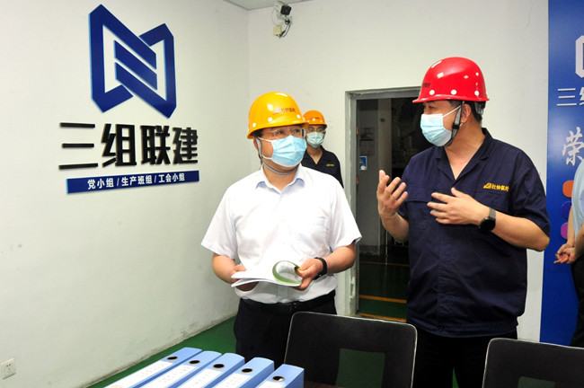戴書記一行參觀了八期生產(chǎn)現(xiàn)場、三組聯(lián)建會議室、技術(shù)研發(fā)支部活動室,并查看了相關(guān)臺賬。在隨后的座談會上,胡書記具體匯報(bào)了公司如何從組織架構(gòu)、推進(jìn)措施、活動形式上提升三組聯(lián)建成效。