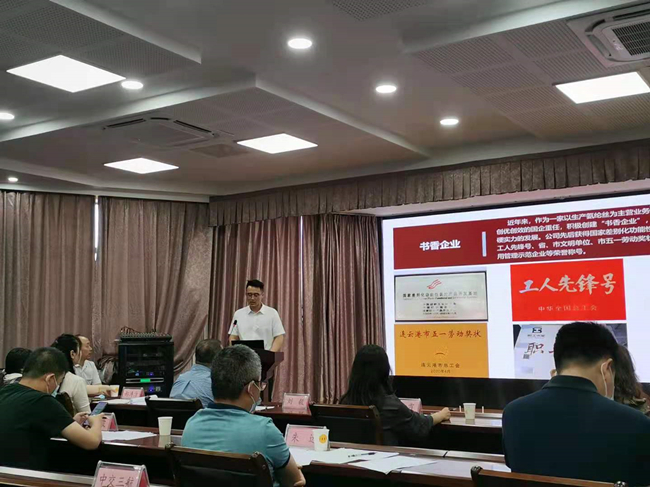 會(huì)上,我公司工會(huì)職工用6分鐘的PPT,圖文并茂地介紹了公司職工書屋的建設(shè)情況以及工作特色、亮點(diǎn)和成效。
