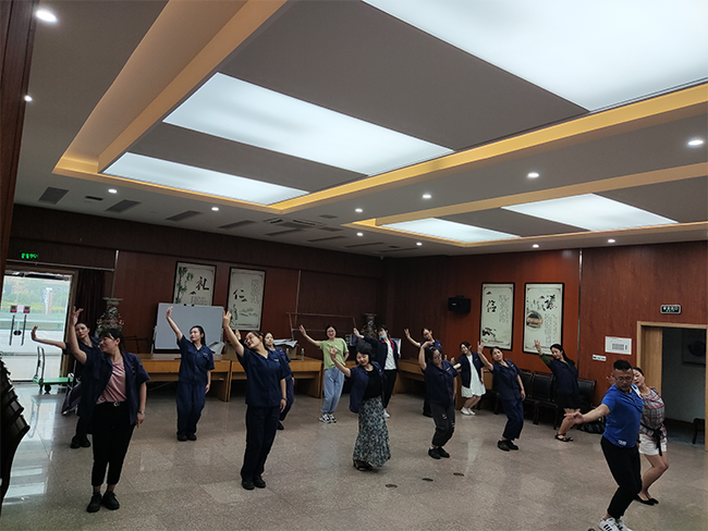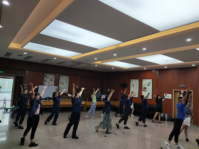 此次活動是公司近幾年來,組織、抽調(diào)人數(shù)最多的一次文藝活動,公司工會組織專人負(fù)責(zé),與基層各部門協(xié)商抽調(diào)15名職工組成舞蹈隊。隊員們?yōu)榱斯ぷ髋啪殐刹徽`,利用休息時間加班加點完成本職工作。許多職工以前從未接觸過舞蹈,四肢較僵硬,不協(xié)調(diào),在困難面前,沒有人選擇退縮,而是以破釜沉舟的精神苦練,休息時間去請教跳的較好的同事學(xué)習(xí)動作,一遍又一遍直到學(xué)會動作。排練過程中大家齊心協(xié)力,共同努力,相互打氣,不喊苦,不喊累。大家表示會全力以赴參加排練,爭取取得圓滿的成績,展現(xiàn)出公司職工健康向上的激情與活力,體現(xiàn)出公司職工團(tuán)隊協(xié)作的精神。