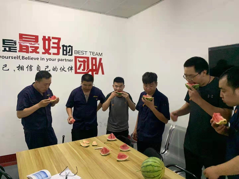 職工們拿到西瓜,幸福的樣子溢于言表。并不忘表示,雖然天氣悶熱難受,但公司送出的清涼與關(guān)懷讓我們感受到這個大家庭對我們的關(guān)愛與溫暖。