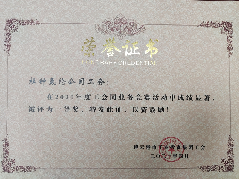 近日,集團(tuán)公司召開工會(huì)二屆二次全委(擴(kuò)大)會(huì)議,會(huì)上對(duì)2020年度工會(huì)同業(yè)務(wù)競賽評(píng)比進(jìn)行表彰,公司工會(huì)榮獲集團(tuán)2020年度工會(huì)同業(yè)務(wù)競賽評(píng)比一等獎(jiǎng)。