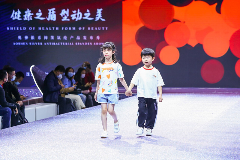 杜鐘新奧神氨綸公司總經(jīng)理張斌向大家介紹了公司的發(fā)展歷程,并隆重推出新產(chǎn)品——銀系抑菌氨綸,指出其在性價比、環(huán)保、安全等方面獨特的優(yōu)勢和市場前景。下游客戶代表紅豆童裝、福建東龍針紡分享了使用奧神抑菌、驅(qū)蚊等功能性氨綸產(chǎn)品的經(jīng)驗和體會,并表示將與杜新奧神氨綸開展長期的戰(zhàn)略合作。最后,精彩的模特走秀完美演繹了兩家合作公司聯(lián)合推出的最新款的時裝、童裝及瑜伽類運動服裝。