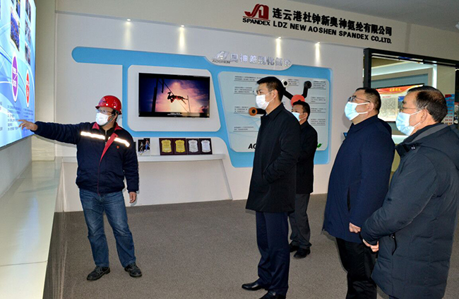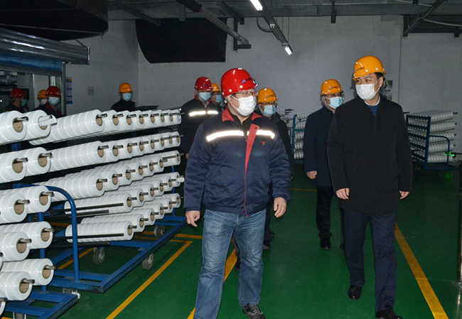2021年2月18日下午,新年上班第一天,副市長魏愛春一行在集團公司黨委書記、董事長楊龍,總經(jīng)理胡建明的陪同下來我司進行調(diào)研并致以新春的祝福。氨綸公司黨委書記胡傳法、總經(jīng)理張斌陪同接待。