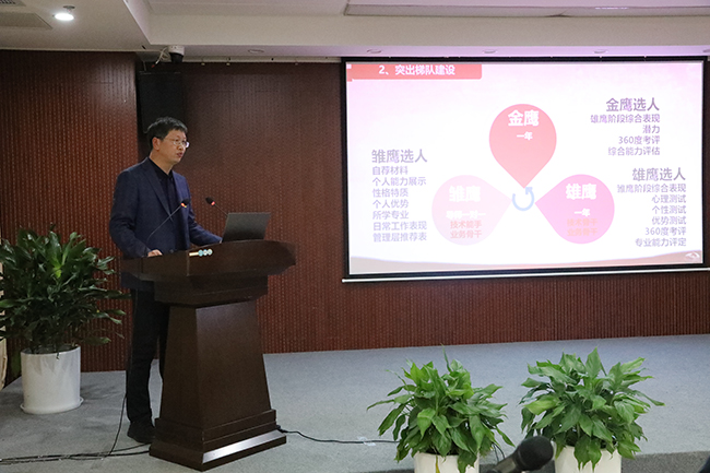 決賽中,10家單位品牌闡述人圍繞背景起因、做法經過、取得成效進行了現場宣講,經過激烈角逐,公司黨群工作部部長陳宏波宣講的《實施“三鷹計劃” 激活人才引擎》榮獲三等獎。