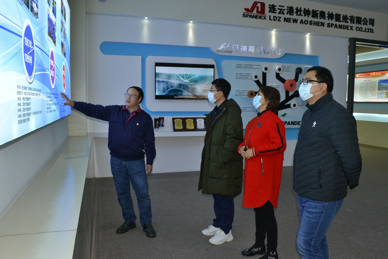 11月23日,國家紡織產(chǎn)品開發(fā)中心總工程師陳寶建一行來公司進行國家差別化功能性氨綸開發(fā)基地的資質實地考評工作。公司總經(jīng)理張斌等陪同考察調研。