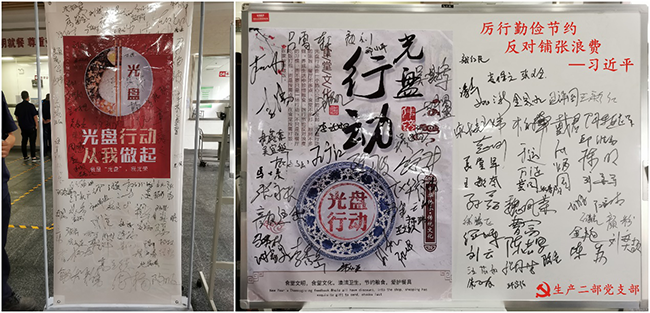 為繼承和發(fā)揚(yáng)勤儉節(jié)約、艱苦奮斗的優(yōu)良傳統(tǒng),響應(yīng)習(xí)近平總書記近期提出的“厲行節(jié)約 反對(duì)浪費(fèi)”的號(hào)召,8月21日,生產(chǎn)二部黨支部組織開展了一次以“光盤行動(dòng)”為主題的倡議活動(dòng)。
