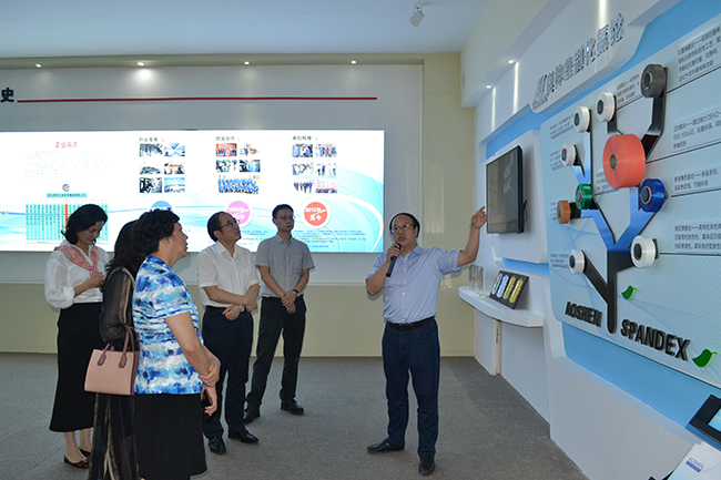 姚正軍主任一行先后參觀了公司展廳、黨員活動(dòng)室、抖音直播間、八期生產(chǎn)線、自動(dòng)化包裝線研發(fā)中心等。公司總經(jīng)理張斌對(duì)我公司的發(fā)展歷程,差別化產(chǎn)品、戰(zhàn)略優(yōu)勢(shì)、積極開拓營銷渠道,創(chuàng)新運(yùn)用新媒體傳播方式推進(jìn)商品銷售等進(jìn)行了詳細(xì)介紹。姚正軍主任對(duì)我公司低溫?zé)嵴澈习本]、抗菌氨綸、驅(qū)蚊氨綸及氨綸生產(chǎn)全流程自動(dòng)化、智能化生產(chǎn)線等給予了高度評(píng)價(jià)。希望公司進(jìn)一步深入實(shí)施差別化氨綸及后道特色產(chǎn)品發(fā)展戰(zhàn)略的重大舉措,再創(chuàng)針織行業(yè)輝煌!