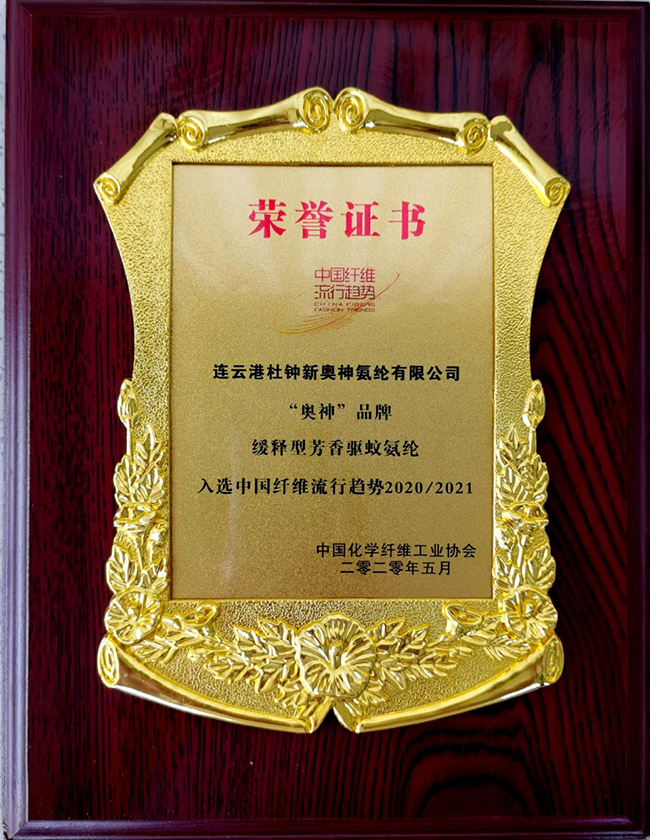 近年來,氨綸公司緊跟時(shí)代步伐,牢牢把握流行趨勢(shì),不斷提升研發(fā)能力,致力于高品質(zhì)、差別化氨綸纖維的研發(fā)、生產(chǎn)和應(yīng)用,先后開發(fā)了超柔、高回彈、原液著色、可染、衛(wèi)材、多彩、石墨烯、低溫?zé)嵴澈稀Ⅱ?qū)蚊、抗菌等系列氨綸產(chǎn)品,多項(xiàng)產(chǎn)品處于同行業(yè)前列。此次,氨綸公司“奧神”品牌緩釋型芳香驅(qū)蚊氨綸成功入選“中國(guó)纖維流行趨勢(shì)2020/2021”,再次證明了我公司在市場(chǎng)需求研判及新產(chǎn)品開發(fā)方面的實(shí)力,也進(jìn)一步提振了“奧神”品牌的影響力。