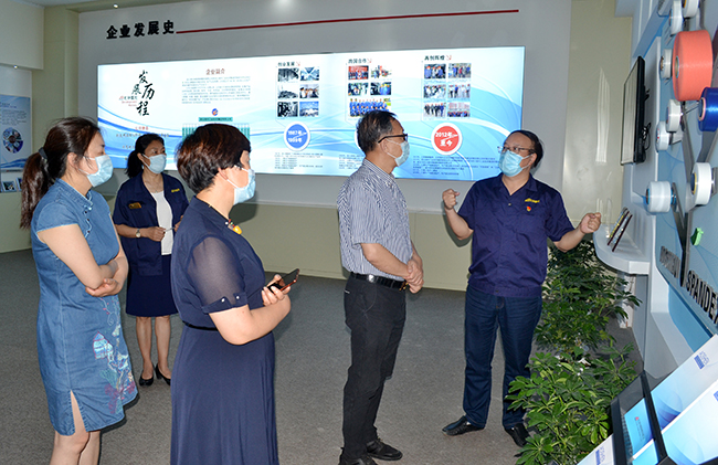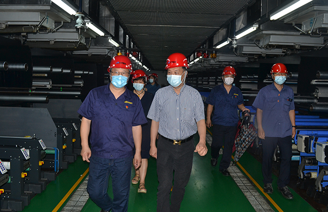 張仲文一行先后參觀了公司產(chǎn)品展廳、八期生產(chǎn)線、研發(fā)中心,公司總經(jīng)理張斌對我公司的發(fā)展歷程,差別化產(chǎn)品、戰(zhàn)略優(yōu)勢等進行了詳細(xì)介紹,張仲文對我公司低溫?zé)嵴澈习本]、抗菌氨綸、驅(qū)蚊氨綸及氨綸生產(chǎn)全流程自動化、智能化生產(chǎn)線等給予了高度評價。