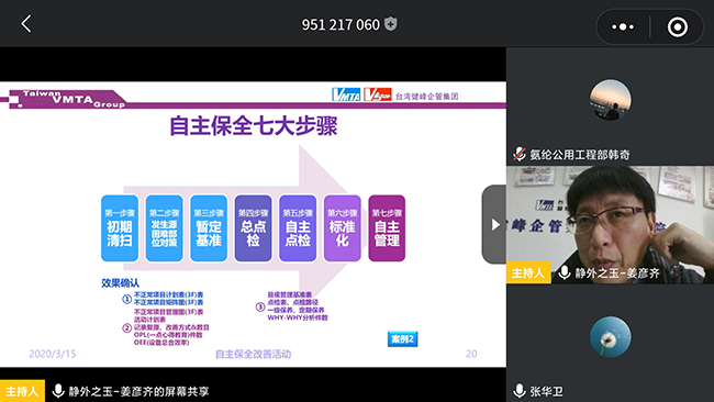 近日,氨綸公司全面落實疫情防控與復(fù)工復(fù)產(chǎn)“兩手抓”。疫情當(dāng)前,為了避免培訓(xùn)人員集聚,公司采取網(wǎng)絡(luò)授課的方式開展培訓(xùn),組織廣大職工開展了線上TPM培訓(xùn)活動。