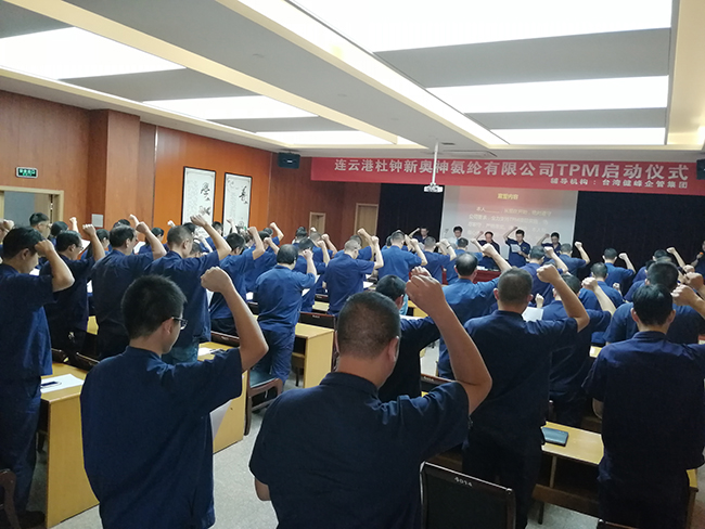 最后的宣誓環(huán)節(jié)將會議推向最高潮?,F(xiàn)場所有與會人員起立高呼,宣誓為證:一定服從公司各項管理要求、全力支持TPM項目輔導(dǎo),恪盡職守,嚴格落實,使公司達到一流管理水平。會議在熱烈的掌聲中圓滿結(jié)束,標志著氨綸公司TPM項目正式啟動,向著更高層次的科學(xué)管理闊步前進。