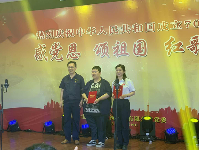 整場比賽氣氛熱烈,場面熱情高亢,《團結(jié)就是力量》《我和我的祖國》《沒有共產(chǎn)黨就沒有新中國》《我的中國心》等一首首熱愛黨、熱愛祖國、熱愛人民、熱愛生活的贊歌在場內(nèi)飄蕩,令人鼓舞,催人奮發(fā),唱出了對偉大祖國的摯愛,對祖國建國70周年輝煌歷程的禮贊。經(jīng)過激烈比拼,生產(chǎn)三部獲得紅歌比賽一等獎;品保部、管理服務(wù)黨支部獲得二等獎;其他參賽代表隊分別獲得三等獎及最佳精神文明獎。