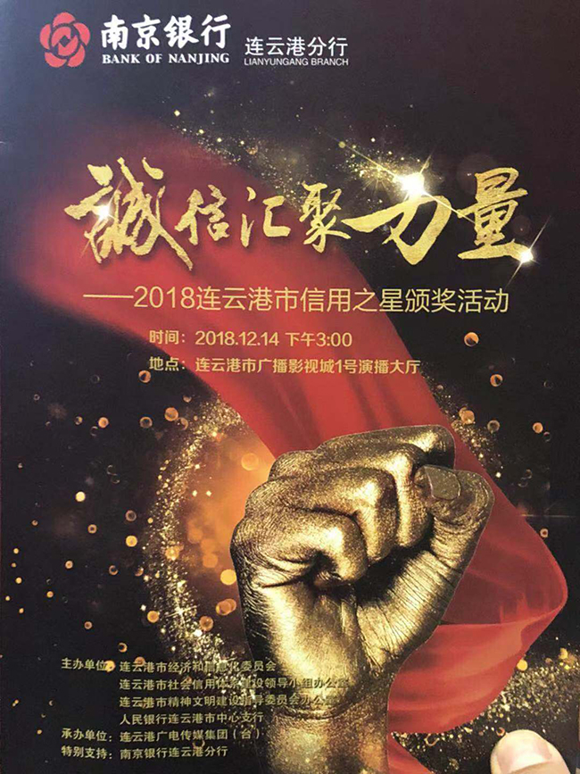 1214日,為深入貫徹習(xí)近平總書記關(guān)于誠信建設(shè)的重要指示精神,由市經(jīng)信委、市社會信用體系建設(shè)領(lǐng)導(dǎo)小組辦公室、人民銀行連云港市中心支行主辦的“誠信匯聚力量”推介評選“港城信用之星”暨“誠信建設(shè)萬里行(連云港站)”頒獎活動在連云港市電視臺1號演播廳隆重舉行。