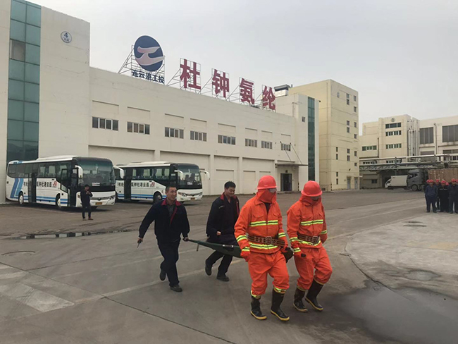 演練模擬DCS甬道上出口溫度報警,員工發(fā)現(xiàn)險情立即呼叫紡絲當(dāng)班班長,紡絲控制室和組件進(jìn)行初步處置后,發(fā)現(xiàn)卷繞間出現(xiàn)明火爆燃,紡絲班長報告消控中心并進(jìn)行現(xiàn)場應(yīng)急處置。公司啟動應(yīng)急預(yù)案,應(yīng)急行動組、現(xiàn)場控制組、后勤保障組各司其職,隔離現(xiàn)場、應(yīng)急救援、疏散人員。后在消防人員的協(xié)助下,大火被成功撲滅,并成功救助一位傷員。演練中,全體參演人員,精神飽滿,恪盡職守,動作規(guī)范,各部門通力合作,演練達(dá)到了預(yù)期,取得圓滿成功。