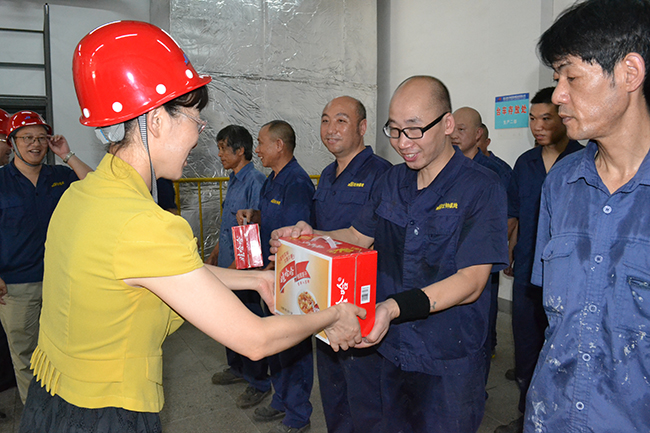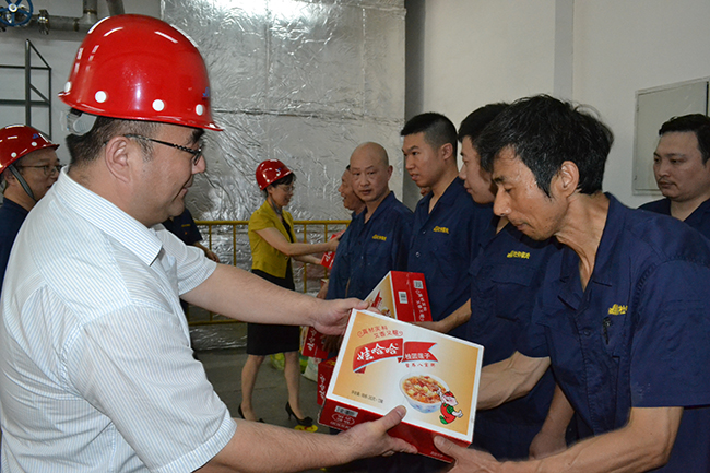 717日上午,集團公司董事長楊龍、紀委書記汪群一行來氨綸公司慰問奮戰(zhàn)在高溫下的一線員工,為他們送去綠豆、牛奶、八寶粥、解暑藥等防暑降溫慰問品。在詳細詢問了防暑降溫各項保障工作的落實情況后,楊龍董事長叮囑大家要合理安排工作時間,避開高溫時段,確保身體健康和安全生產(chǎn)。氨綸公司總經(jīng)理張斌、副書記王克平陪同慰問。