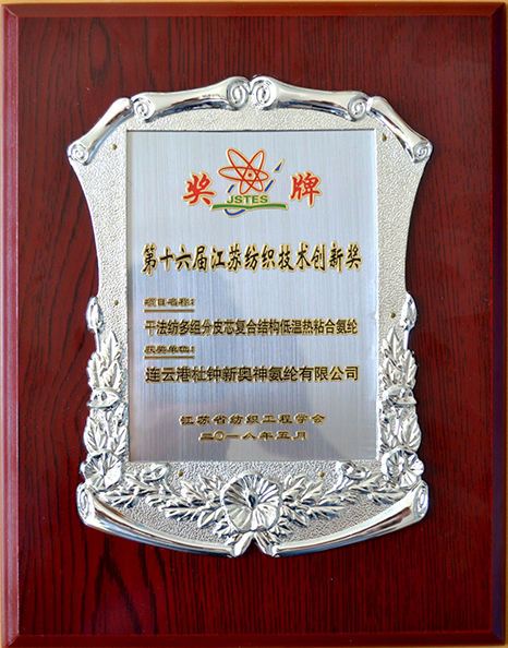 氨綸公司新產(chǎn)品獲第十六屆江蘇省紡織技術(shù)創(chuàng)新獎