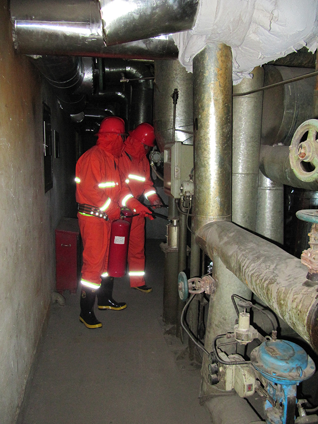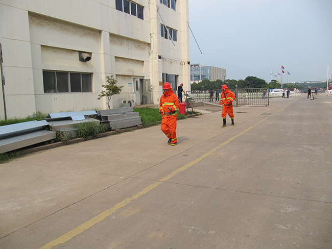 為增強員工安全意識,提高廣大員工面對突發(fā)事件時的應(yīng)急應(yīng)變能力,2017年8月10日下午3點,公司安全部組織甬道間導(dǎo)熱油泄漏起火應(yīng)急演練,50余名員工參與演練。