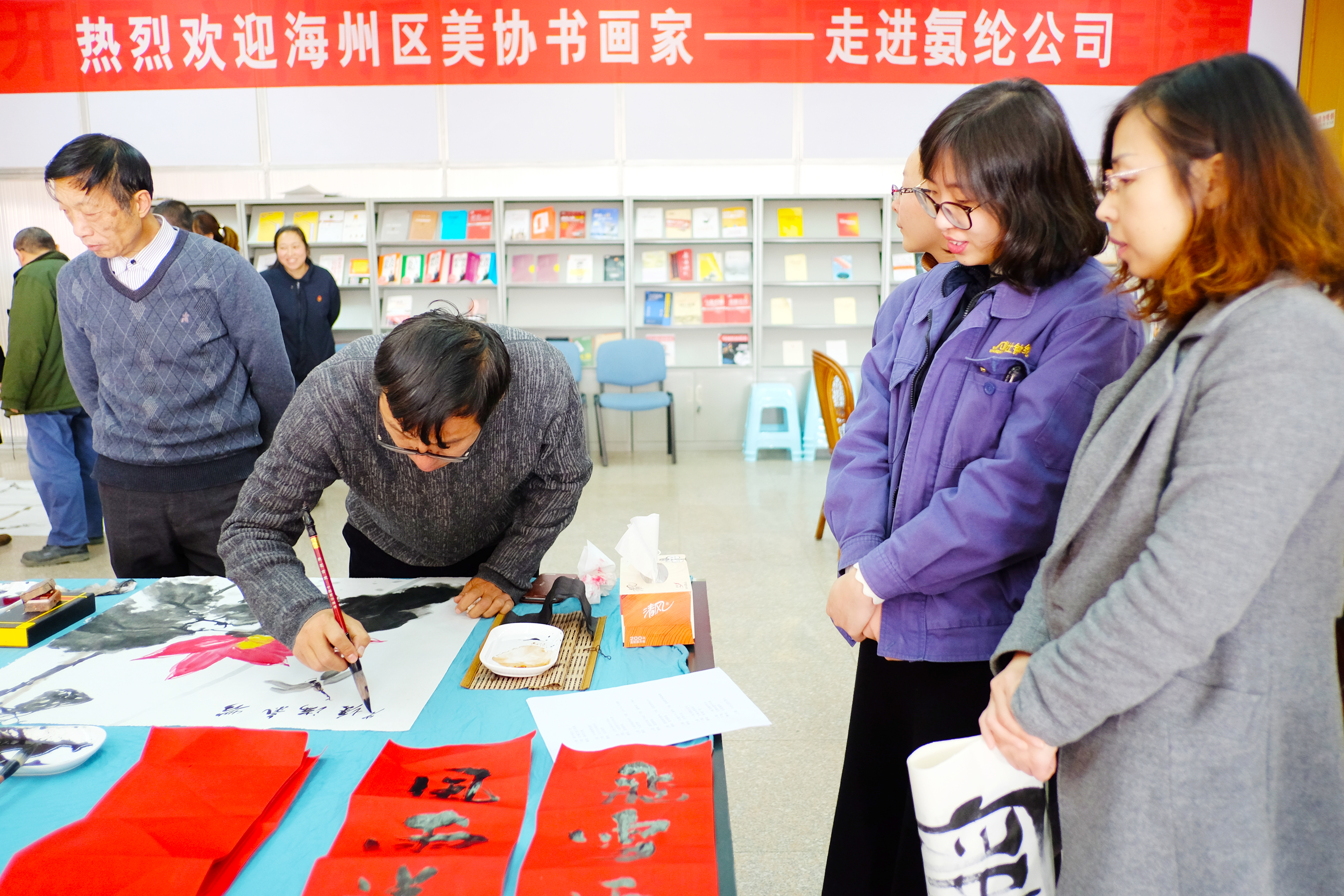 元旦、春節(jié)將至,為營造和諧喜慶的節(jié)日氣氛,不斷提升企業(yè)文化品位氛圍,12月30日,海州區(qū)美術(shù)協(xié)會7位書畫大師受邀赴我公司潑墨獻寶。我司幾位書法愛好者也同場競技學(xué)習,豐富了員工的文化生活。