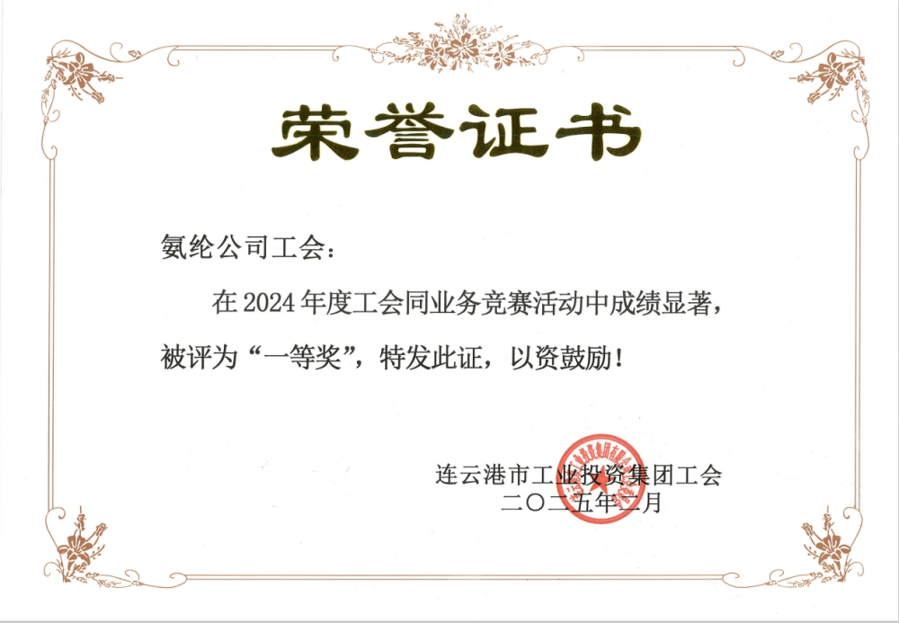 杜鐘氨綸公司工會榮獲集團(tuán)2024年度工會同業(yè)務(wù)競賽評比一等獎