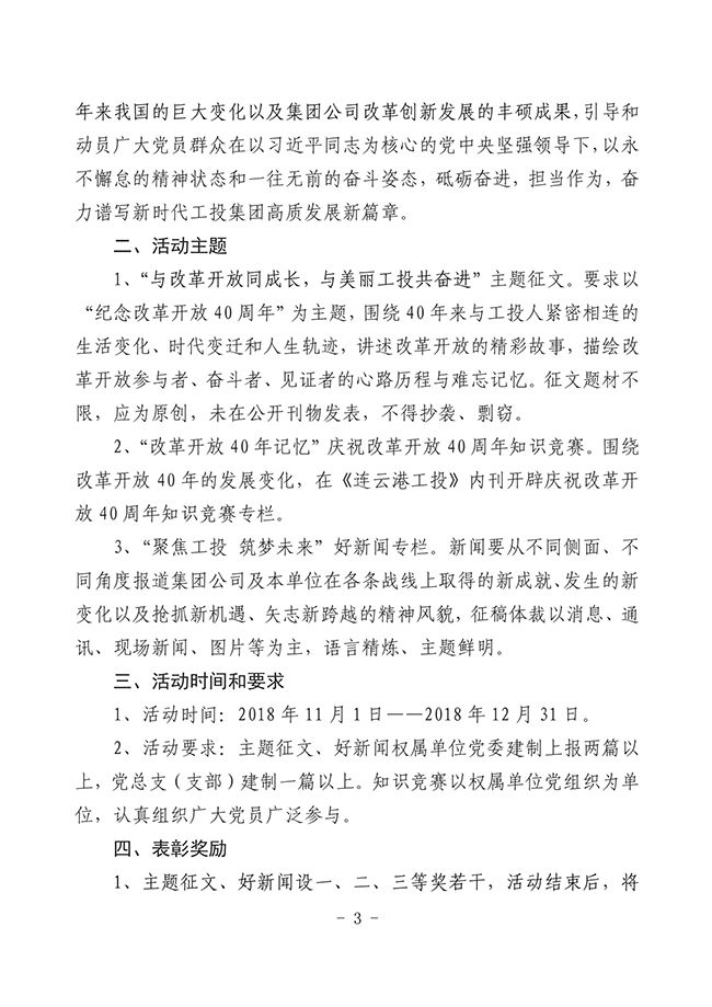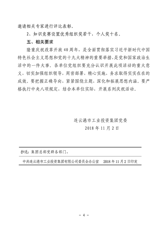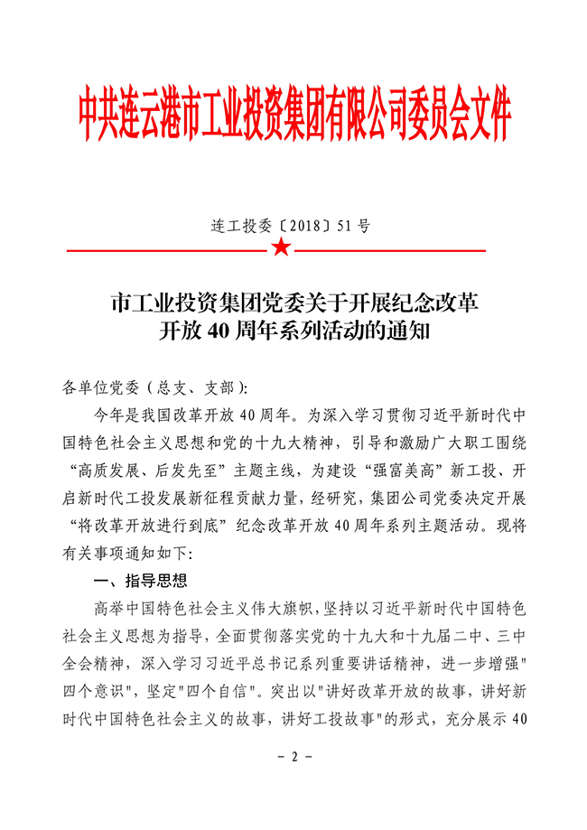 關(guān)于轉(zhuǎn)發(fā)《市工業(yè)投資集團(tuán)黨委關(guān)于開(kāi)展紀(jì)念改革開(kāi)放40周年系列活動(dòng)》的通知