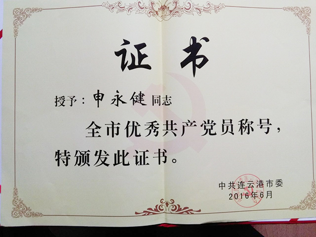 我司員工申永健獲市優(yōu)秀共產(chǎn)黨員稱號(hào)